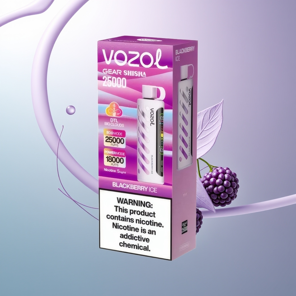 VOZOL Gear Shisha 25000 Bouffées Mûre Glacée avec Double Mesh et 5mg/ml